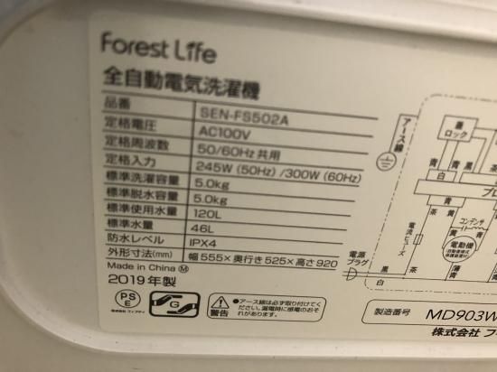フィフティ SEN-FS502A 5kg洗濯機 19年製
