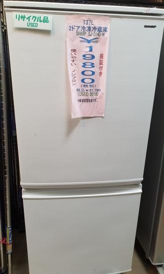 SHARP SJ-D14D-W 2ドア冷凍冷蔵庫 137L
