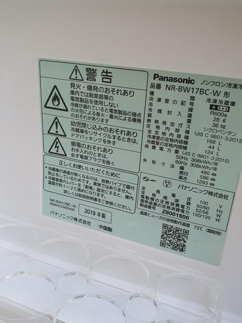 Panasonic NR-BW17BC-W 2ドア冷凍冷蔵庫168L
