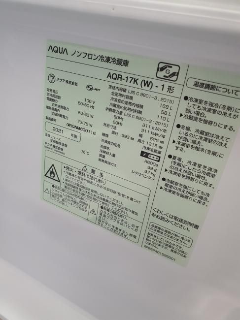 AQUA AQR-17K 2ドア冷凍冷蔵庫168L